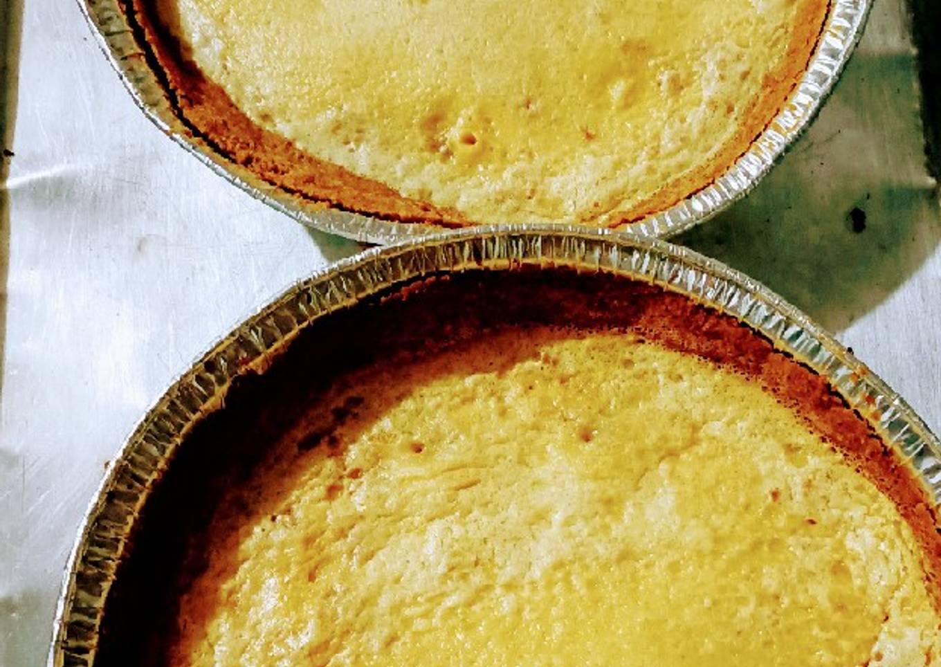 - Ponemos los huevos, las leches, la vainilla y licuamos. Después sacamos nuestras bases de pays y agregamos la mezcla con un cucharón vaciamos